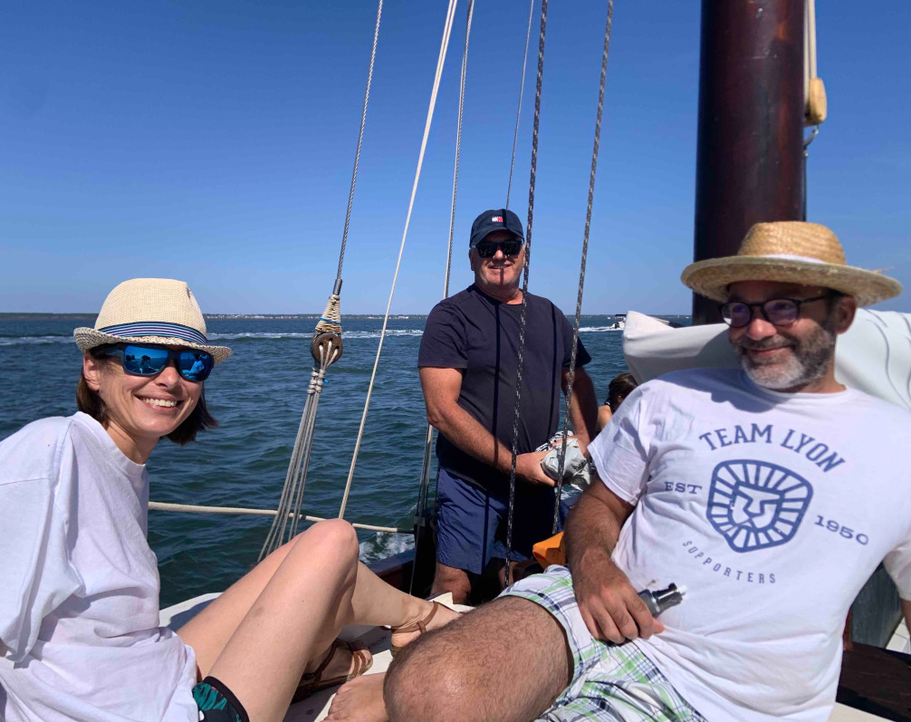 Par un temps magnifique, après un trajet sympathique en bac à voile traditionnel, chacun de nous s'est mis à quatre pattes pour dénicher les minuscules poches de graines des zostères.
