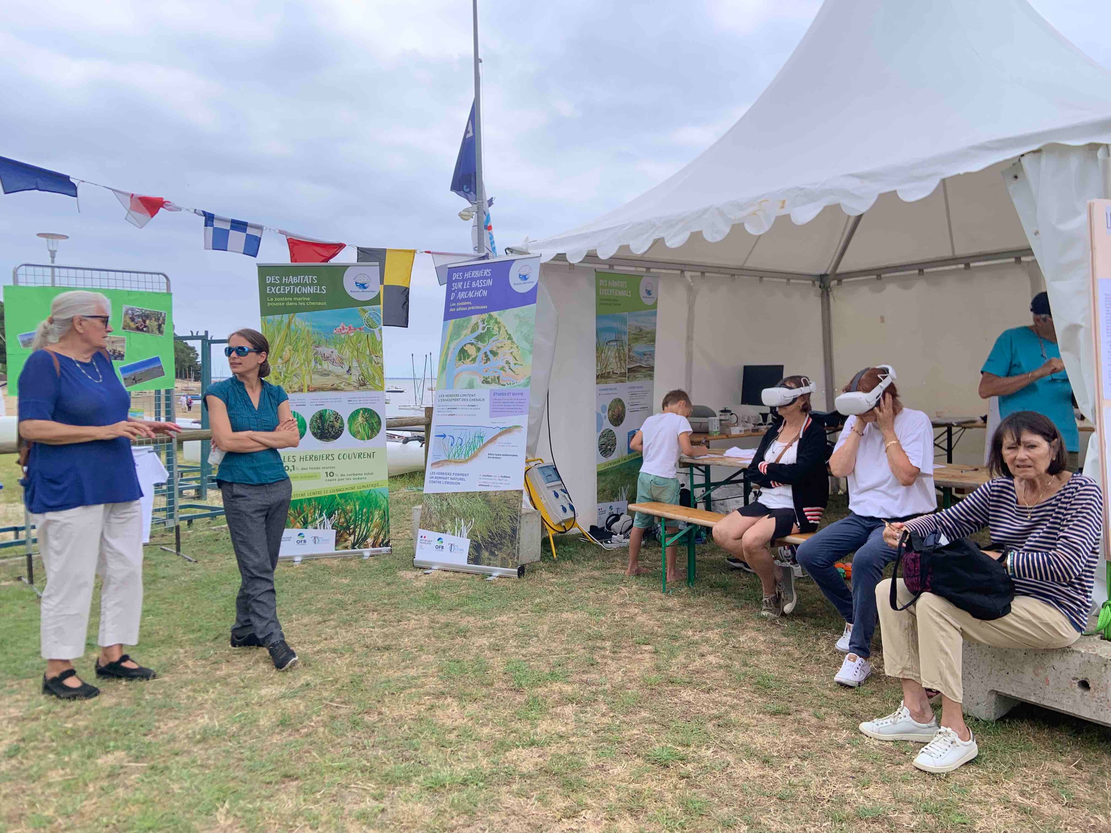 Grace à 3 casques prêtés par le PNM du Bassin d'Arcachon, nous présentions notamment des vidéos en VR (réalité virtuelle), permettant de se sentir complètement immergé dans la vie sous-marine du bassin.