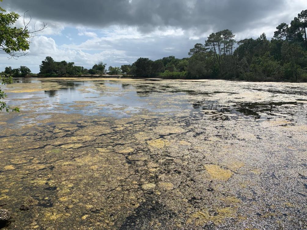 Il nous a aussi envoyé des photos du réservoir d'eau salée de Saint Brice, prises durant la 1ere décade de juillet, totalement envahie d’algues, entraînant le phénomène d’eutrophisation du milieu.