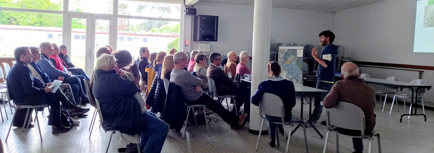 Le 25 avril 2024 à 18h, après une introduction par M. BRUSSAC (Association de sauvegarde du site Quinconces Saint-Brice Le Coulin), M. Alexandre BERT guide naturaliste à l'office du tourisme d'Arès, a donné une conférence dans la grande salle des Lugées à Arès.